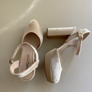 Modelo talonado y cinta al tobillo elaborado en Ante jeans